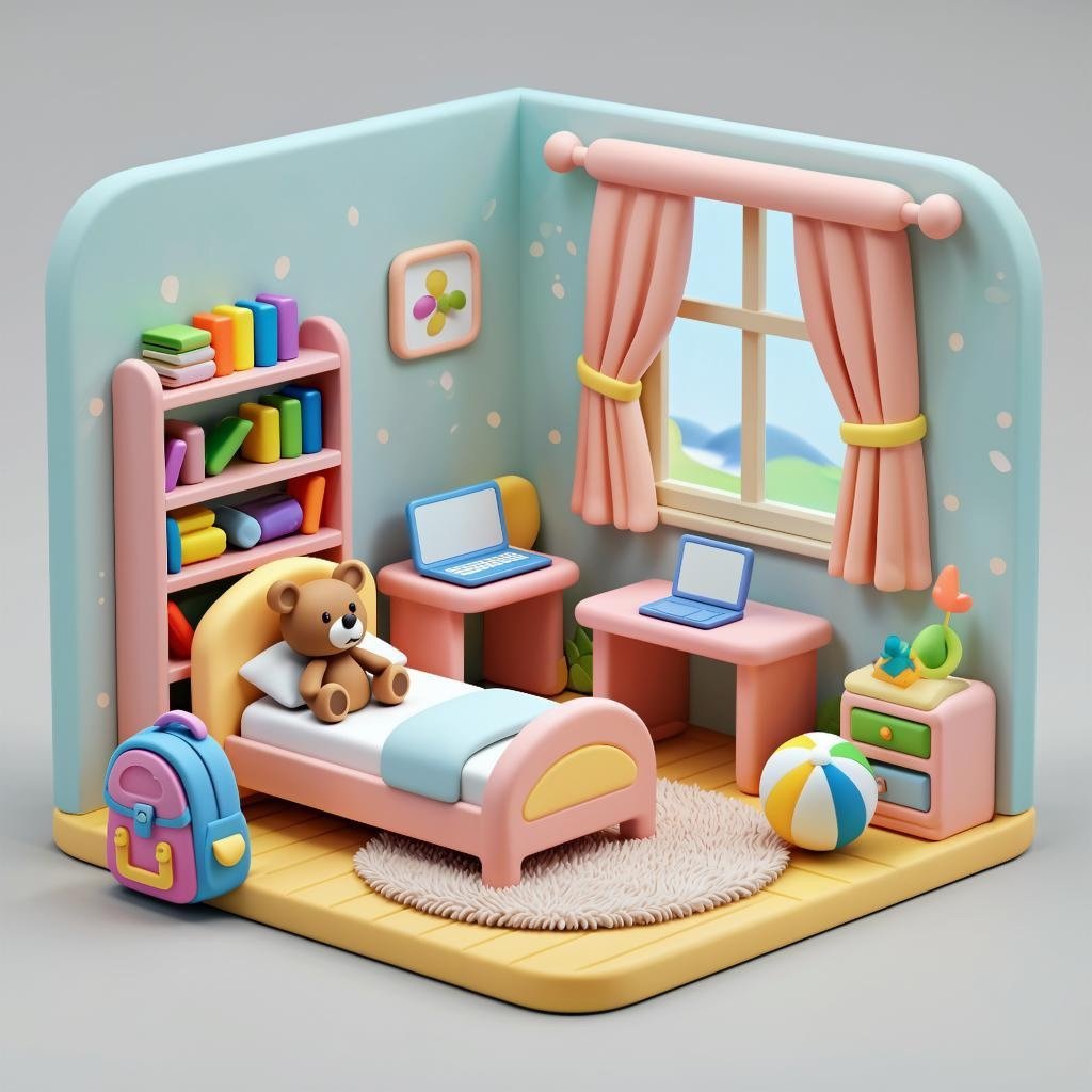 Speculation/context: The tidy layout and study desk suggest early primary school children who share a room and do their homework here before bedtime stories.